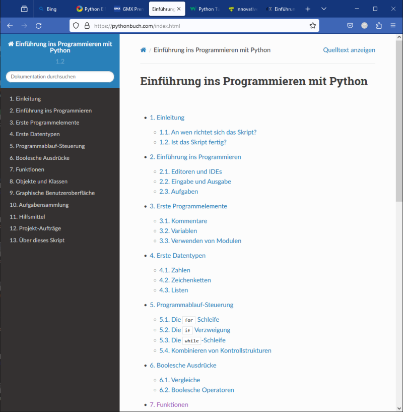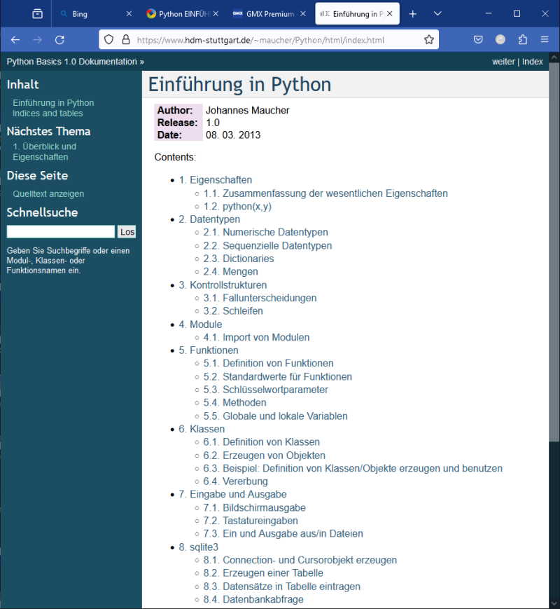 Das Python Tutorial entstand im Rahmen von Uni-Kursen und kann hier kostenlos genutzt werden. Python ist eine für Anfänger und Einsteiger sehr gut geeignete Programmiersprache, die später auch den Fortgeschrittenen und Profis alles bietet, was man sich beim Programmieren wünscht. Der Kurs ist eine Einführung und bietet einen guten Einstieg. Es wird aktuelles Wissen vermittelt - daher schreiben wir unseren Python-Code mit der aktuellen Python-Version 3.