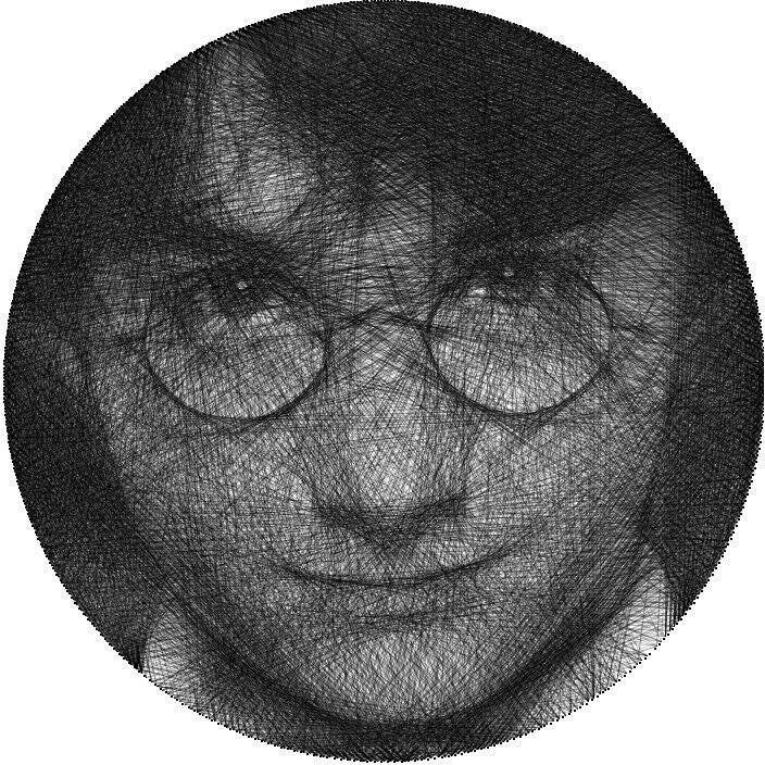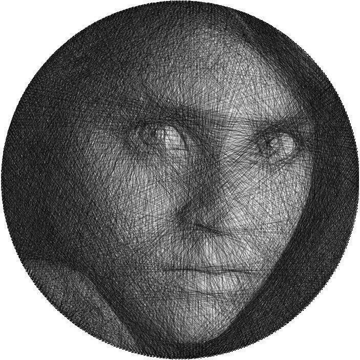 Für die Erstellung dieser kreisförmigen Fadenbilder gibt es mittlerweile leistungsfähige Computerprogramme, die ein Schwarz/Weiss-Bild digitalisieren und mit Hilfe spezieller Algorithmen den Weg des Fadens berechnen. Das Ergebnis ist eine Liste mit den Nummern der Nägel, die der Reihe nach verbunden werden müssen.