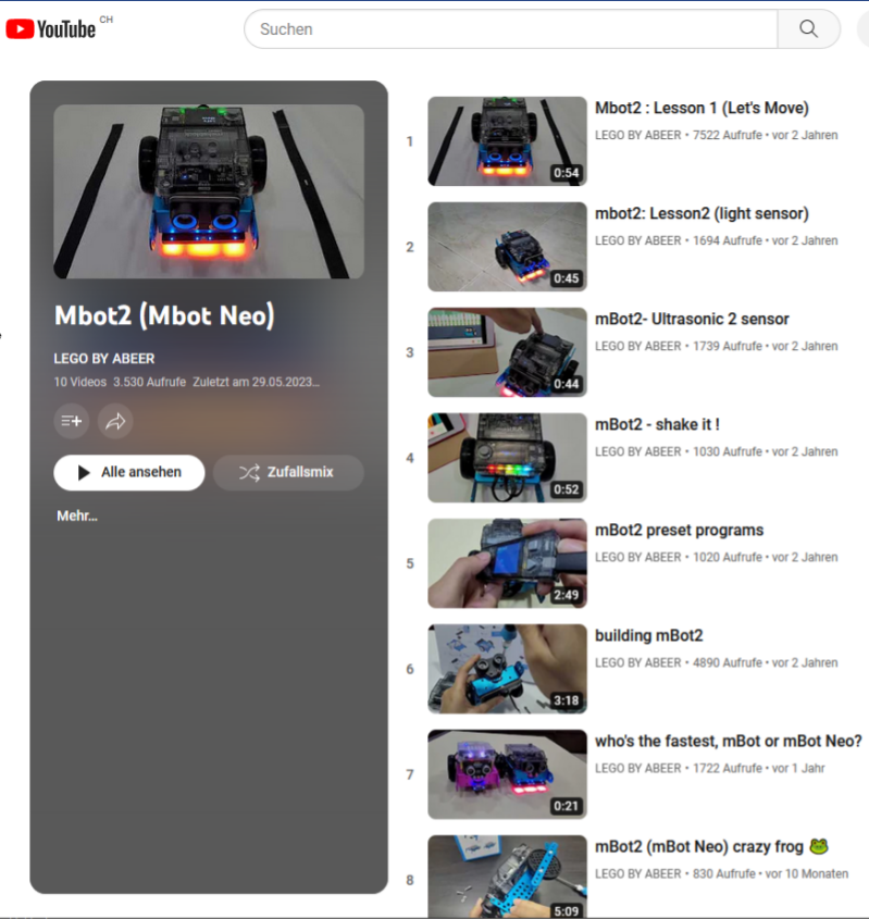 Das kurze Video soll nur zeigen, in welcher Lernumgebung der Lernroboter zur Anwendung kommt. Die entsprechenden Programme werden wir anschliessend sehr ausführlich vorstellen.