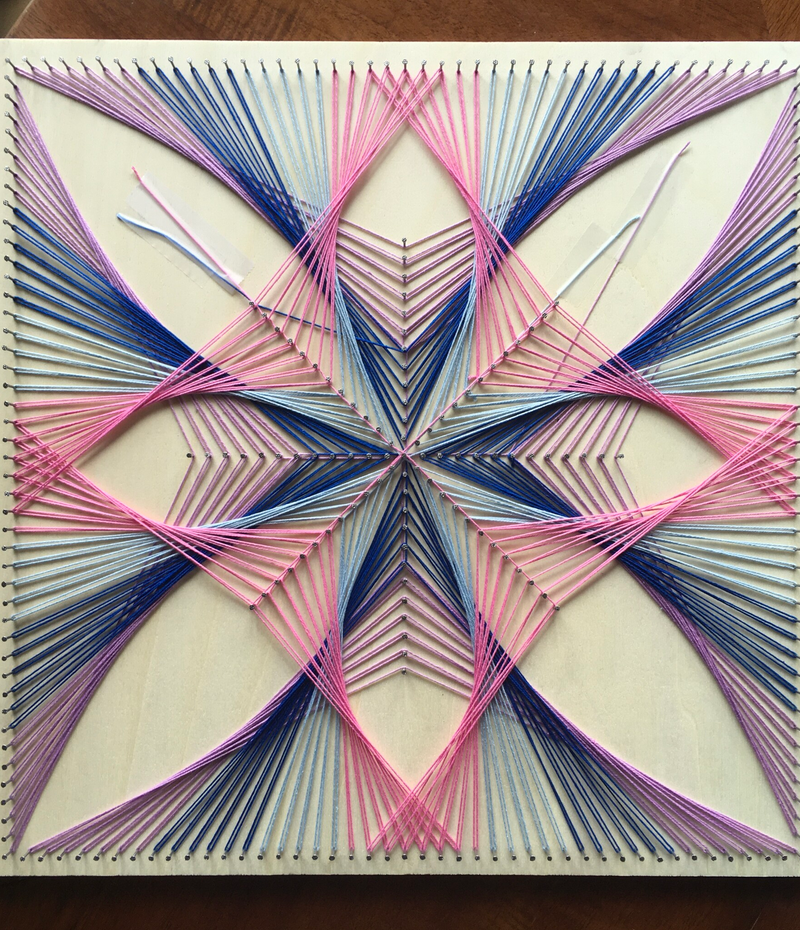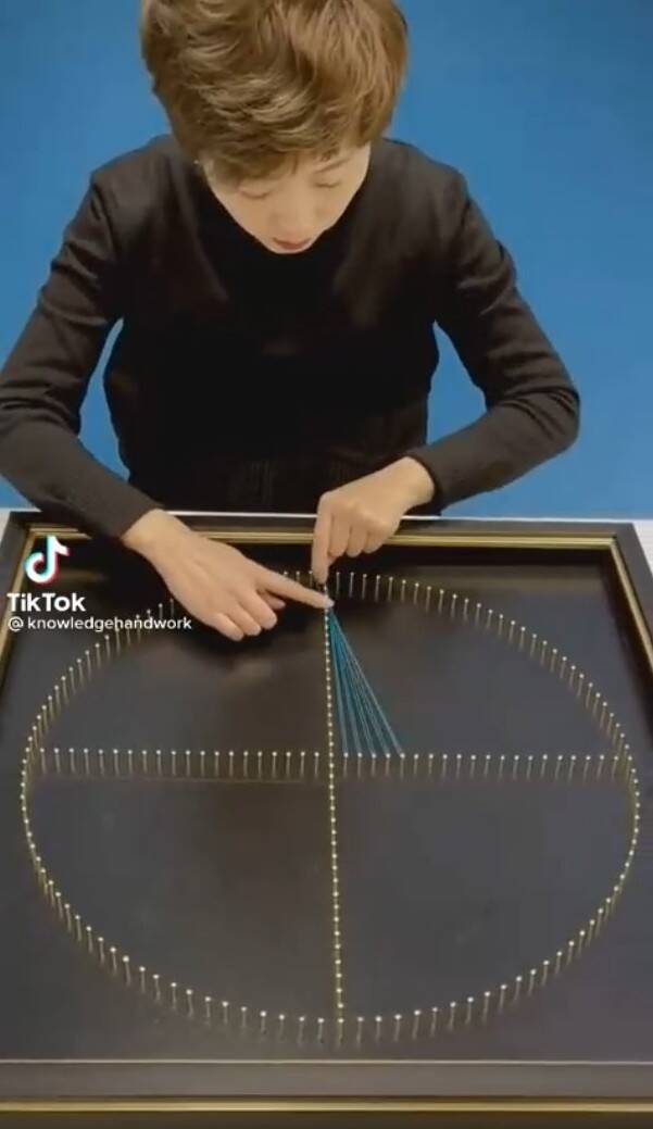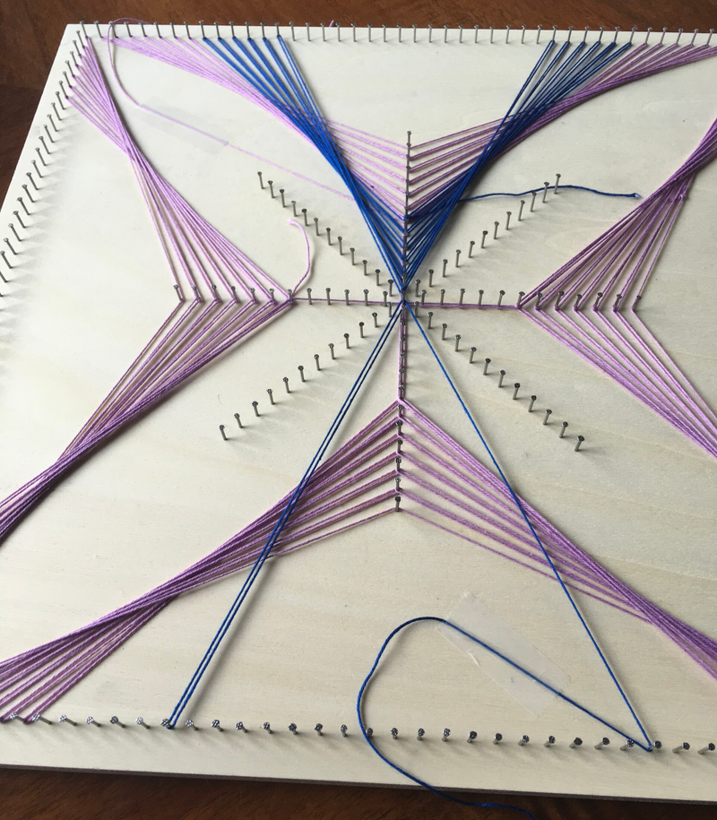 Bei Fadengrafiken erwartet der Betrachter, dass die Nägel geordnet sind und gerade stehen und dass die Fäden nach einem sichtbaren Muster angelegt wurden.