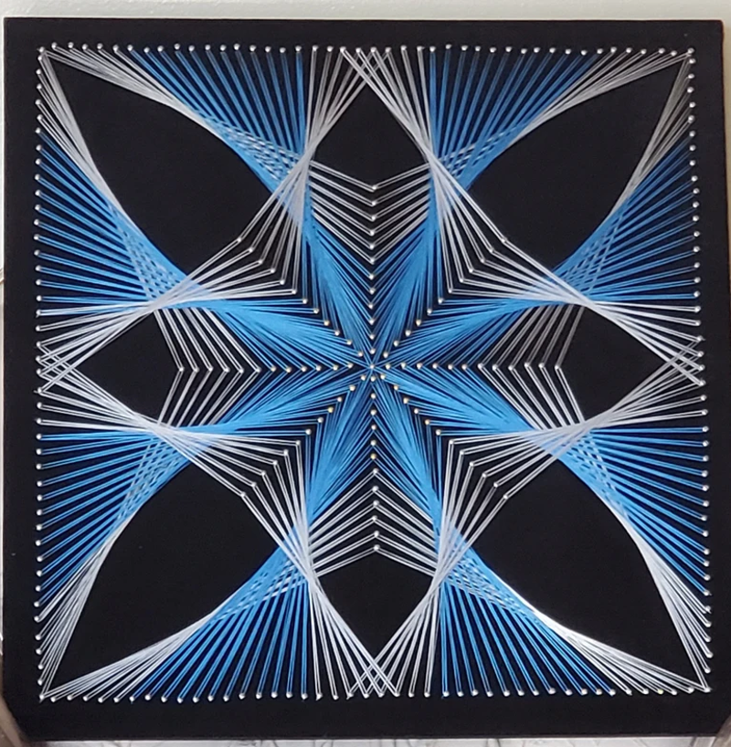 Die hier beschriebene Fadengrafik diente nur dazu, unterschiedliche Techniken und Anwendungsformen zu testen. Zu einem Kunstwerk wird die Grafik erst, wenn der Untergrund die richtige Farbe und der Faden die richtige Dicke hat. Und natürlich vorallem, wenn das Muster zur Geltung kommt und das Interesse des Betrachters weckt.